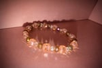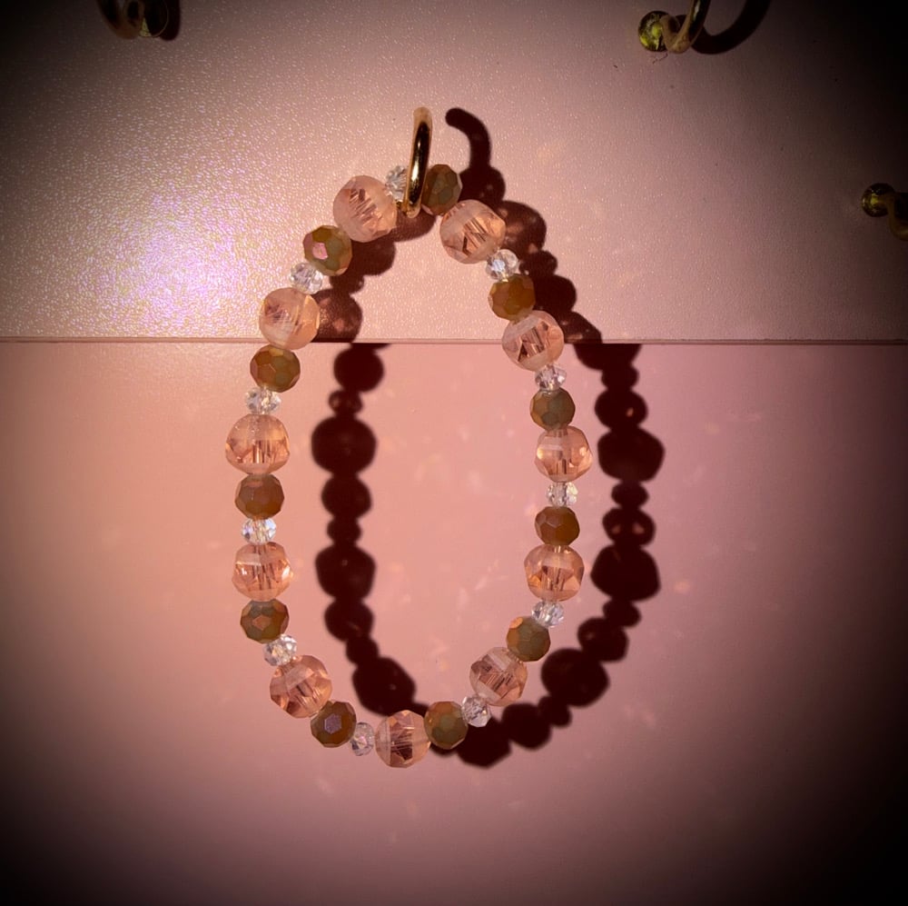 The Rose Gold Bracelet is a handmade beaded bracelet featuring warm peach and champagne-toned crystals with subtle golden accents.